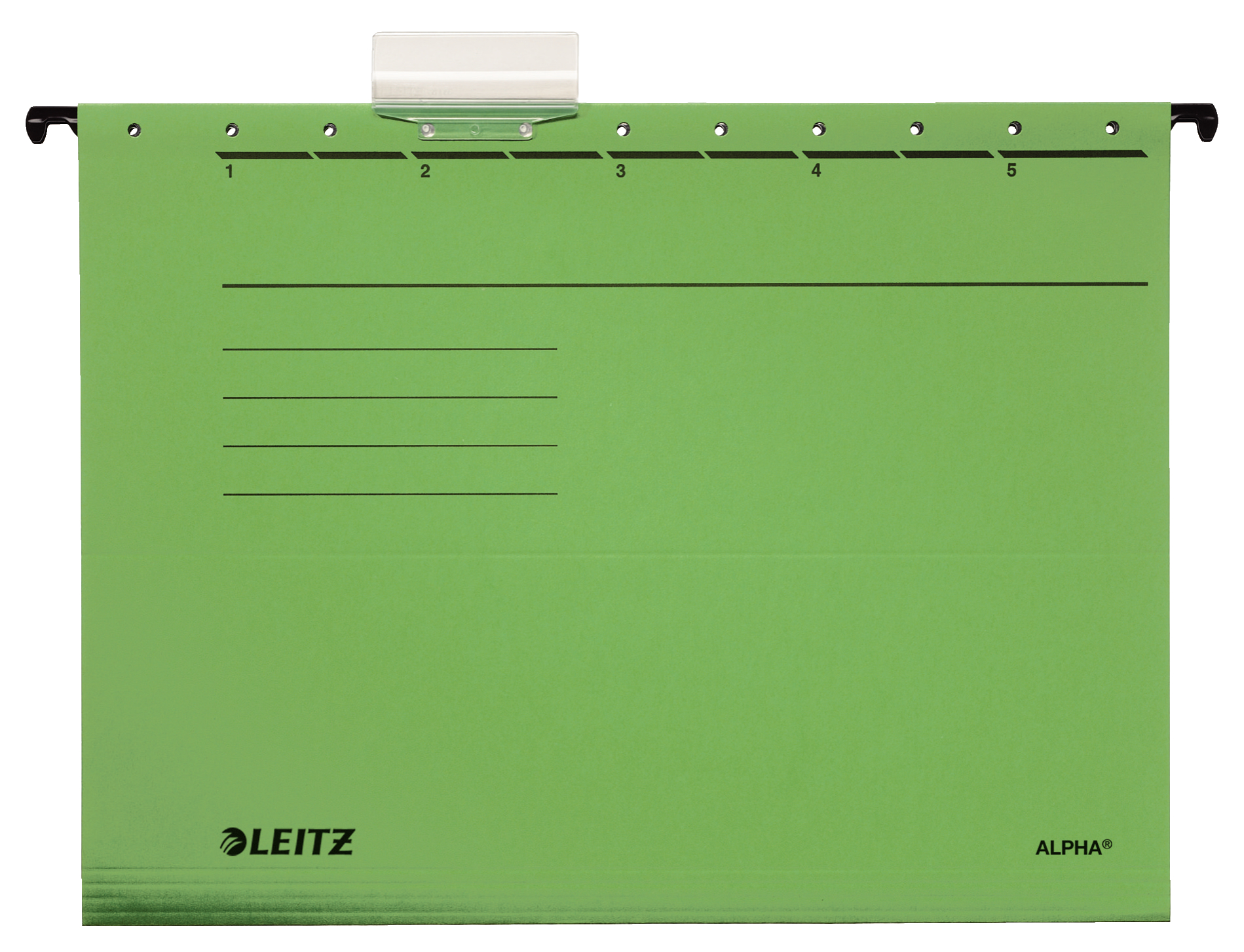 Die LEITZ Hängemappe Alpha A4 in grün bietet praktischen Stauraum für Dokumente. Im Set sind 5 Stück enthalten, ideal für Büro und Zuhause.