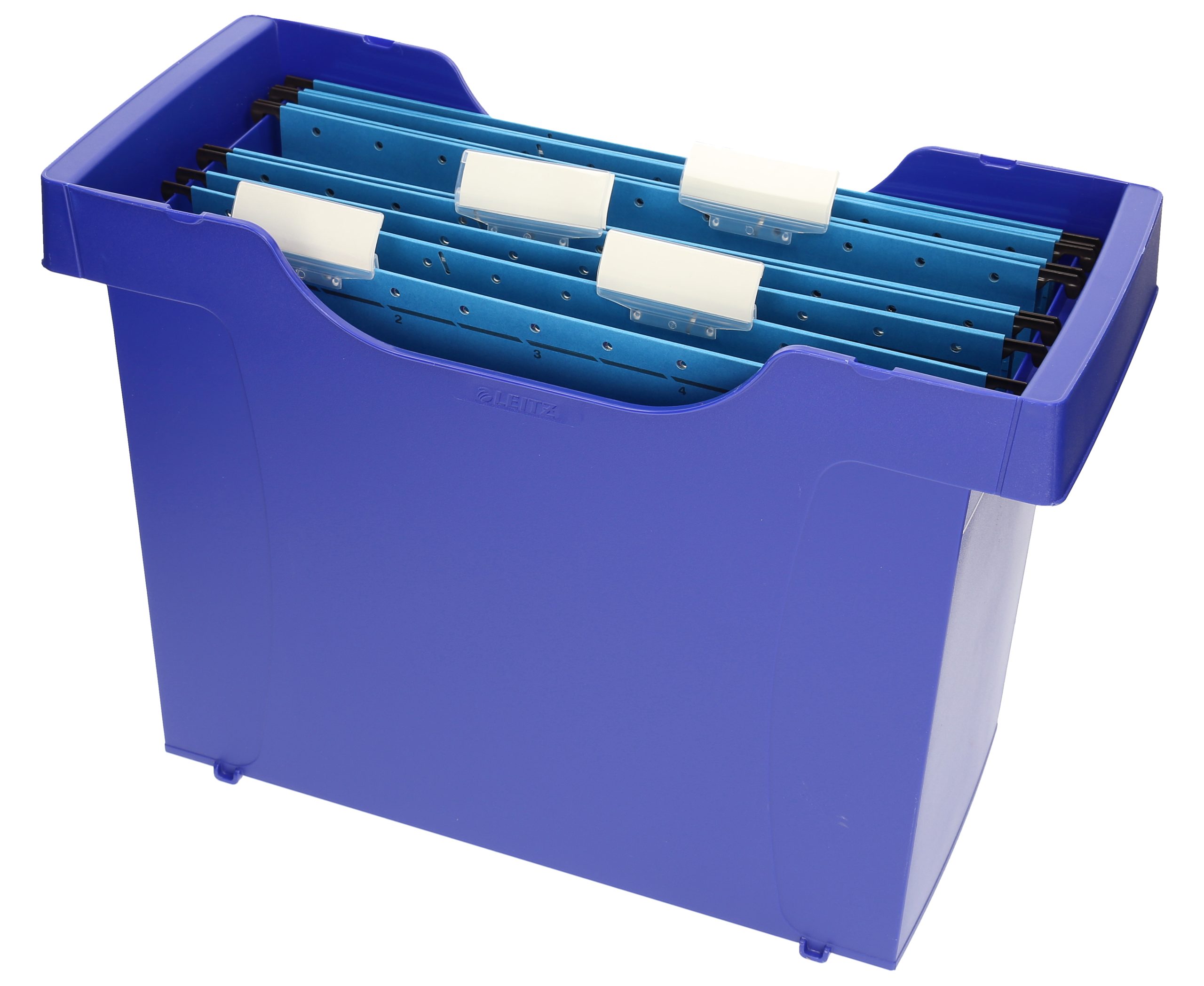 Die LEITZ Hängemappenbox 1993-00-35 in blau bietet Platz für Ordnung und Übersicht. Inklusive 5 Hängemappen für effiziente Dokumentenablage.