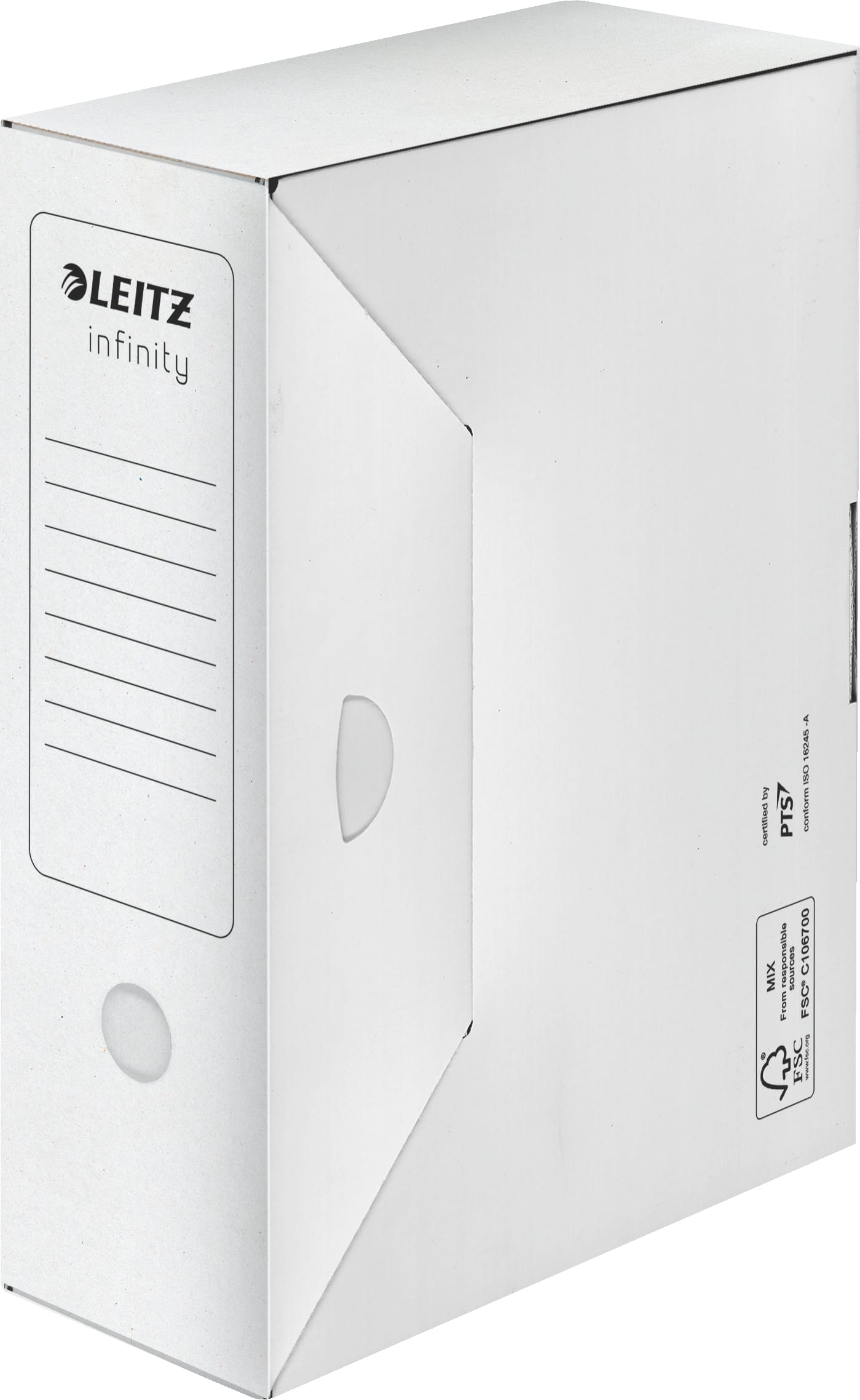 Die Leitz Infinity Archivschachteln sind die ideale Lösung für die langfristige und sichere Aufbewahrung von Dokumenten. Erfüllen Sie mühelos die Anforderungen der internationalen Archivnorm ISO 16245 mit dieser zuverlässigen Serie von Archivprodukten.