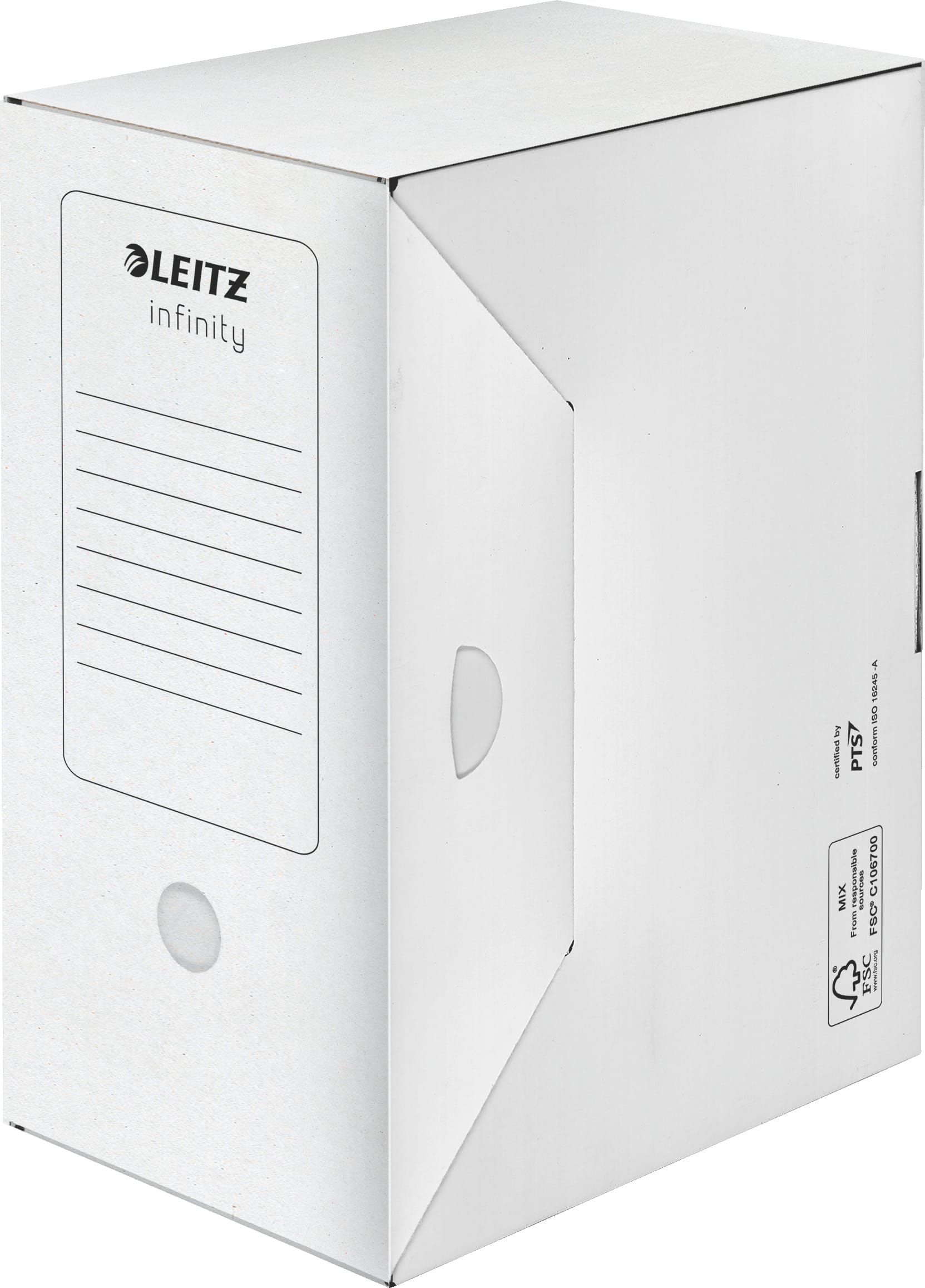 Die Leitz Infinity Produkte wurden entwickelt, um die Anforderungen der internationalen Archivnorm ISO 16245 für die langfristige Aufbewahrung von Dokumenten zu erfüllen. Diese Serie von Archiv-Boxen und -Mappen aus 100% säurefreier Wellpappe wurde von der Papiertechnischen Stiftung PTS in Deutschland geprüft und zertifiziert.