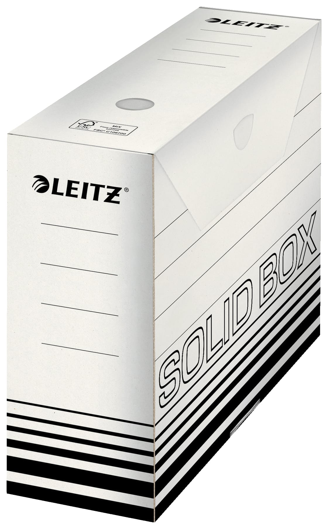 Die Leitz Solid Box ist die ideale Lösung zur Archivierung von Dokumenten im Büro oder Zuhause. Dank ihres starken Materials, doppeltem Boden und Wänden eignet sie sich hervorragend für die Aufbewahrung, den Versand oder Transport von schweren Gegenständen. Mit ihrem praktischen Automatik-Aufbau ist die Box in wenigen Sekunden einsatzbereit und überzeugt durch ihre extreme Haltbarkeit und Stabilität.