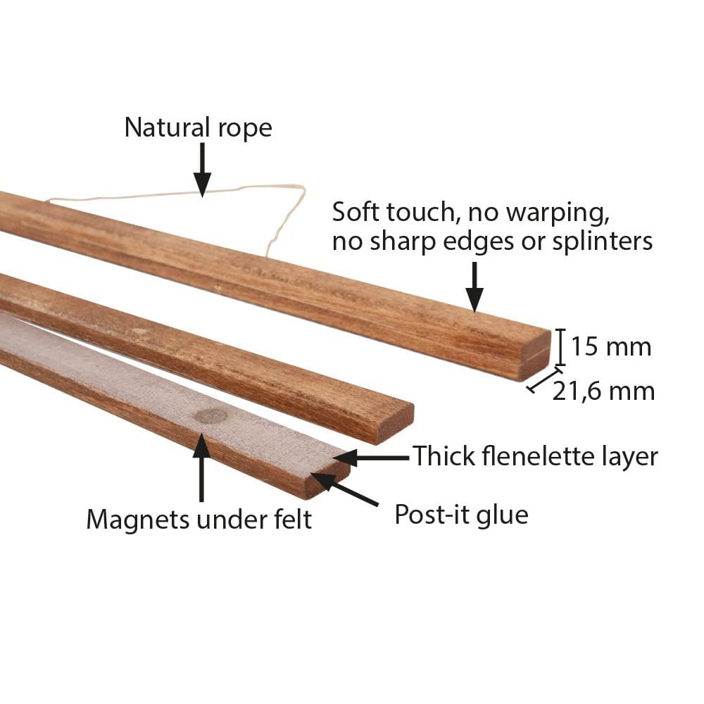 Vier magnetische Holzstäbe halten das Poster sicher an Ort und Stelle. Die starke Magnetkraft sorgt dafür, dass das Poster nicht verrutscht oder herunterfällt und immer perfekt präsentiert wird.