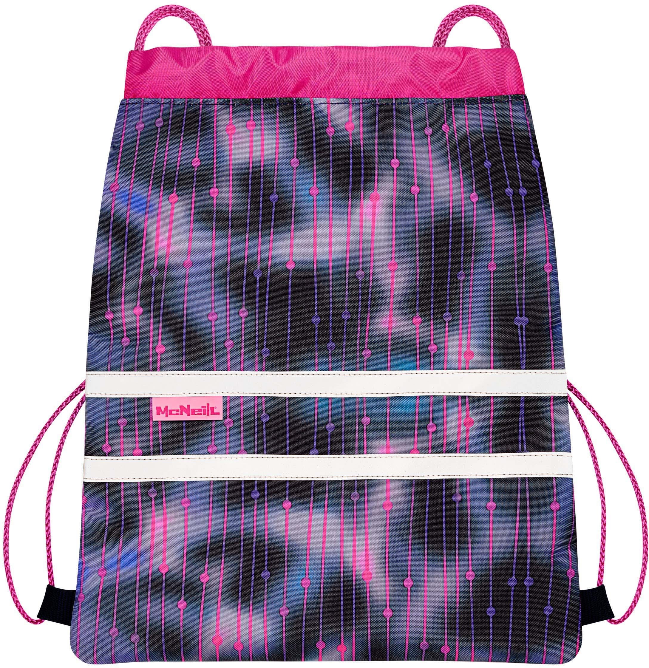 Ein besonderes Highlight des McNeill Turnbeutels ist der Kordelzug, der nicht nur als Verschluss dient, sondern auch als Trageriemen fungiert. So kann der Beutel ganz einfach in der Hand getragen, am Ranzen befestigt oder über die Schultern gehängt werden. Alternativ lässt sich der Sportschuhbeutel auch wie ein Rucksack auf dem Rücken tragen – für maximalen Komfort in jeder Situation.
