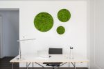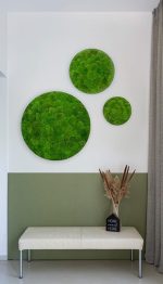 Die Mooskreise sind von hochwertigen Edelstahlumrahmungen eingefasst, die handgefertigt und Made in Germany sind. Die Rahmen sind 2mm breit und 40mm tief, was ihnen ein modernes und elegantes Aussehen verleiht.