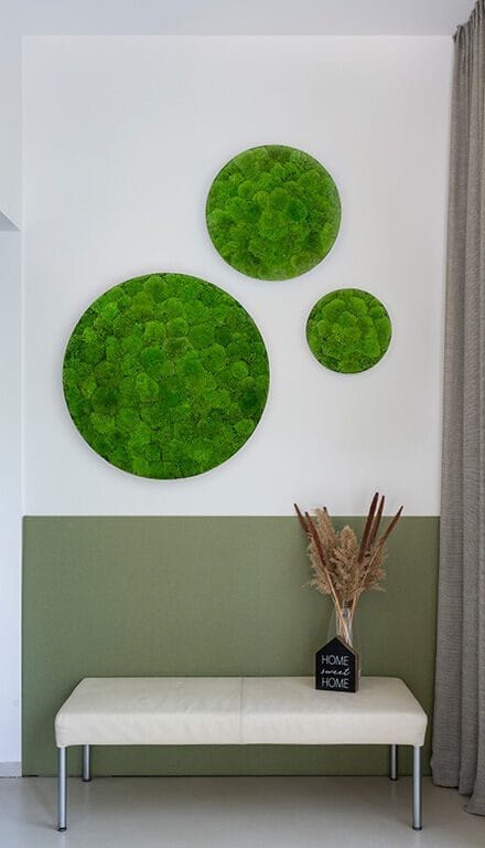 Die Moosbilder bestehen zu 100% aus echtem, konserviertem Moos, das dauerhaft grün bleibt und eine natürliche Atmosphäre schafft.