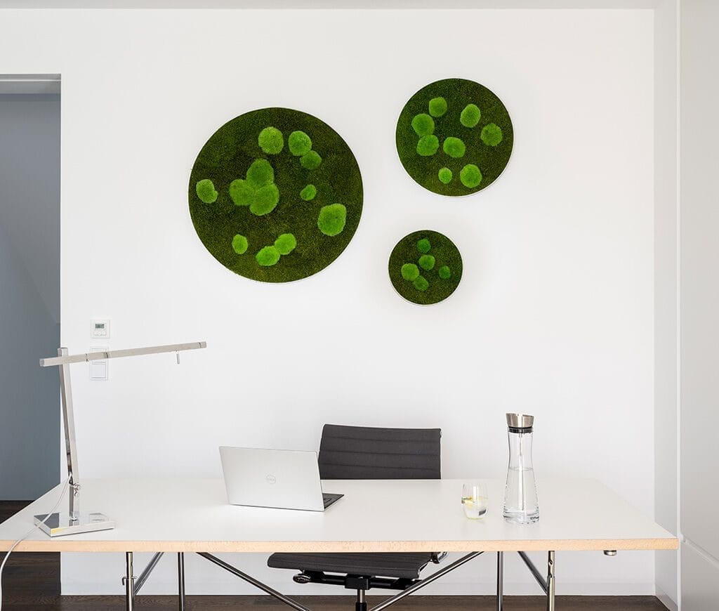Mit seiner imposanten Größe eignet sich der 80cm Mooskreis besonders gut für große Räume wie Wohnzimmer oder Küche. Platzieren Sie ihn über Ihrer Couch oder Ihrem Esstisch und schaffen Sie ein naturnahes Ambiente in Ihrem Zuhause.