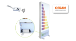 Die LED-Beleuchtung des Rahmens erfolgt von zwei gegenüberliegenden Seiten und garantiert eine gleichmäßige Ausleuchtung. Dank hochwertiger OSRAM LED-Technik mit speziell angepasster Linsenform erstrahlt Ihr Inhalt in hellem Licht mit einer Farbtemperatur von 6500 Kelvin. Trotz seiner Leuchtkraft von etwa 400-750 cd verbraucht der Leuchtrahmen lediglich 88 Watt, was ihn äußerst effizient macht und zu einer energiesparenden Lösung für Ihr Display macht.