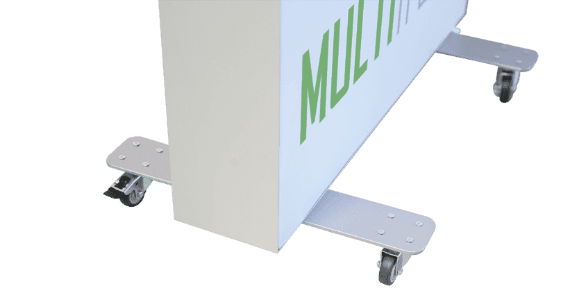 Der multi frame SL Battery LED Leuchtrahmen ist standardmäßig mit stabilen Stahlfüßen ausgestattet, die optional mit 4 arretierbaren Rollen aufgerüstet werden können. Dadurch wird der Rahmen leicht beweglich und flexibel einsetzbar. Die praktische Möglichkeit, den Leuchtrahmen sowohl mit Akku als auch direkt über das Stromnetz zu betreiben, sorgt für maximale Flexibilität in jeder Situation.