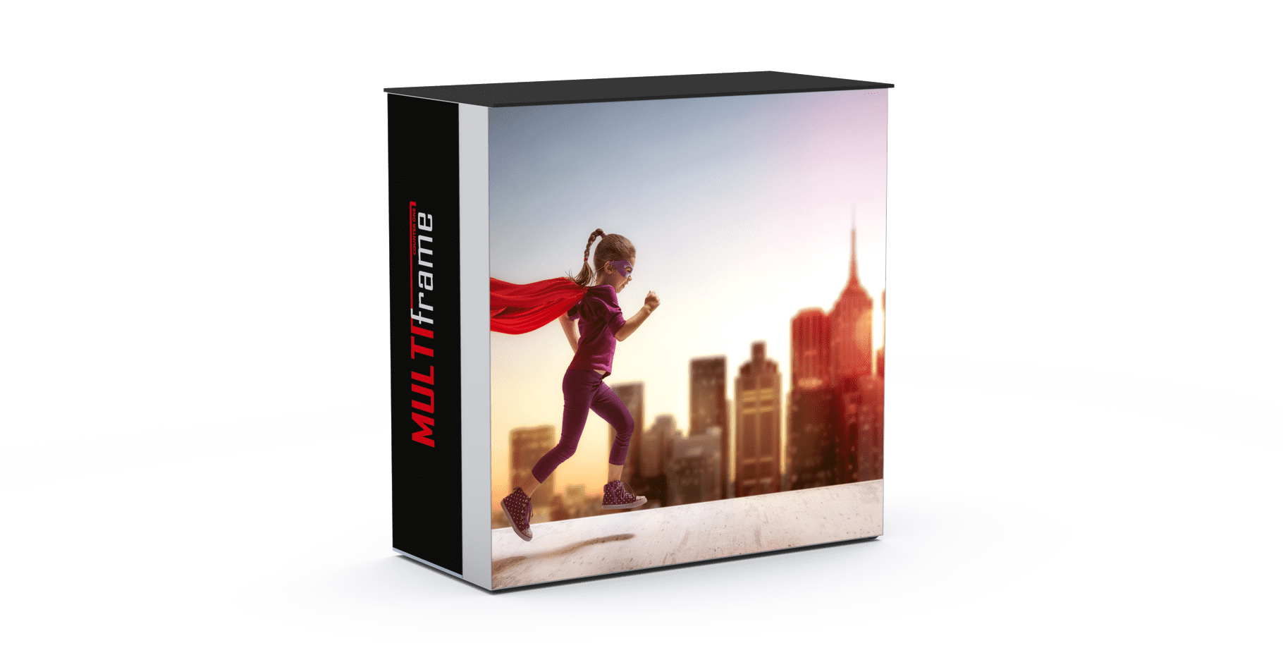 Der Multi Frame Counter One ist die optimale Lösung für eindrucksvolle Präsentationen auf Messen und Veranstaltungen. Mit seiner LED-hinterleuchteten Bildfläche, dem praktischen Ablagefach, dem rollbaren Transportkoffer und der individuellen Druckanpassung bietet dieser Counter eine moderne, professionelle und beeindruckende Präsentationsmöglichkeit, die die Aufmerksamkeit Ihrer Zielgruppe garantiert auf sich ziehen wird.