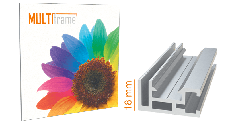 Das Multi Frame System bietet eine elegante und flexible Lösung für die Präsentation von Druckmaterialien in verschiedenen Umgebungen. Die Rahmenprofile bestehen aus hochwertigem silber eloxiertem Aluminium und sind ideal geeignet zur Aufnahme von verschiedenen Druckmedien wie Stoffen, die mit einer Gummilippe konfektioniert werden können.