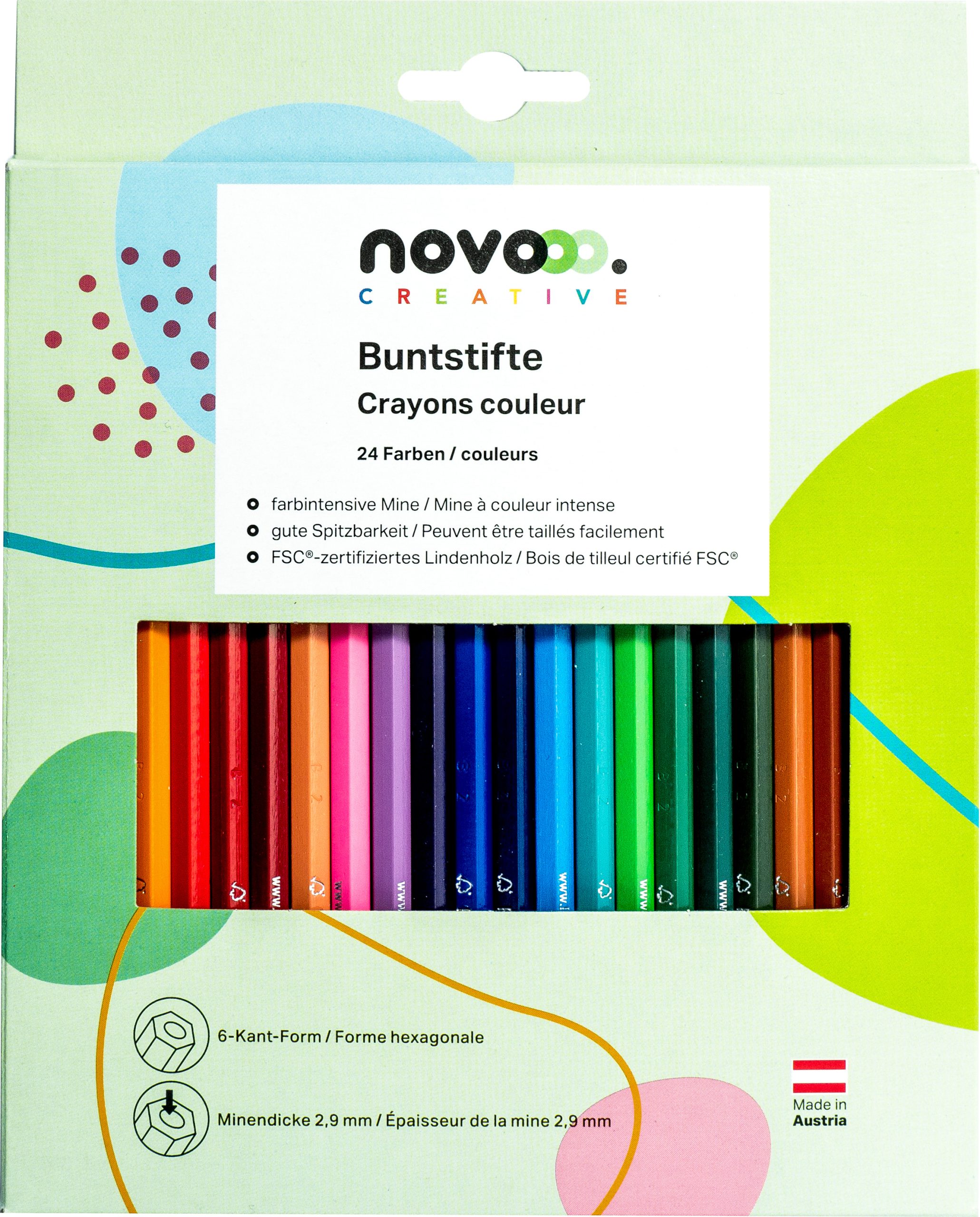 Die NOVOOO Farbstifte 91336-0028 sind eine hervorragende Wahl für alle, die ihrer Kreativität freien Lauf lassen möchten. Mit 24 lebendigen Farben in einem praktischen Kartonetui sind diese Farbstifte ideal für Kinder und Erwachsene gleichermassen. Ob für das Zeichnen, Ausmalen oder kreative Bastelprojekte – diese Farbstifte bieten eine breite Palette an Anwendungsmöglichkeiten.