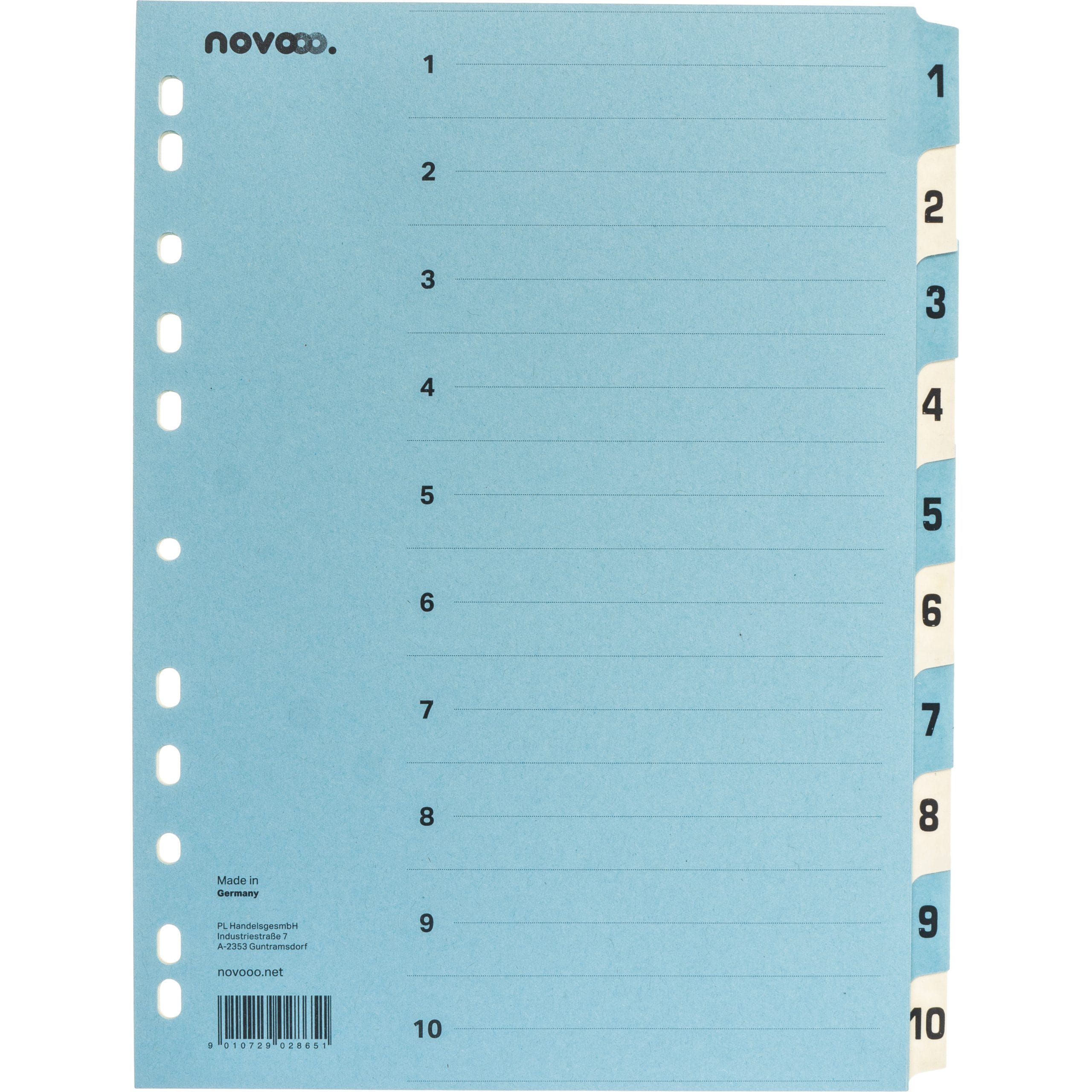 Das Register ist mit den nummerierten Tabs von 1 bis 10 ausgestattet, die eine einfache und klare Navigation durch Ihre Dokumente ermöglichen. Jeder Tab ist deutlich gekennzeichnet, sodass Sie schnell und unkompliziert auf die gewünschten Unterlagen zugreifen können. Die praktische Grösse im A4-Format macht das Register ideal für die Verwendung in Aktenordnern oder Schnellheftern.