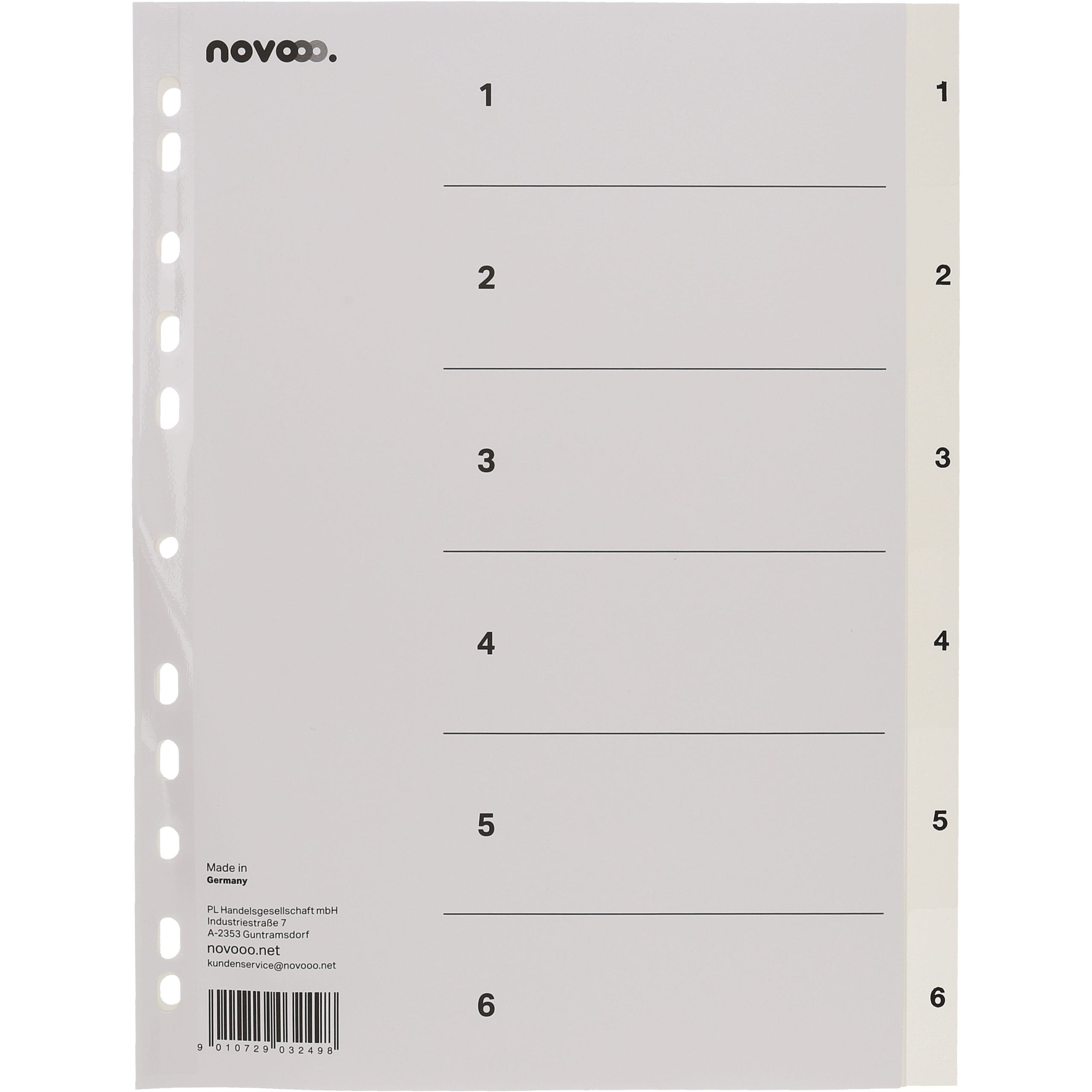 Hergestellt aus hochwertigem Polypropylen (PP), ist das NOVOOO Register nicht nur robust, sondern auch besonders leicht und langlebig. PP ist ein wasserabweisendes Material, das das Register vor Feuchtigkeit und Verschmutzung schützt. Die klare, glatte Oberfläche sorgt dafür, dass die Beschriftungen leicht lesbar sind und gleichzeitig vor Abnutzung geschützt werden. Dank der hohen Flexibilität des Materials bleibt das Register auch bei häufigem Gebrauch formstabil.