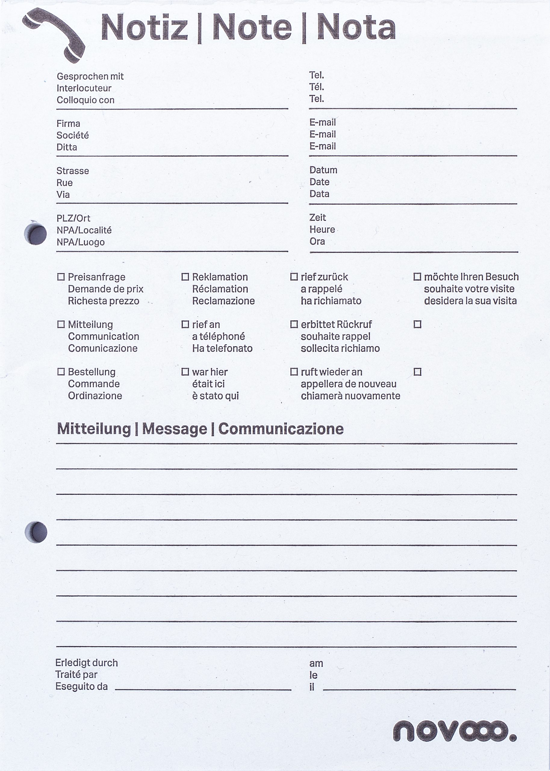 Der Telefonblock von novoo aus Recyclingpapier ist ideal zur Mitschrift bei Telefonaten.