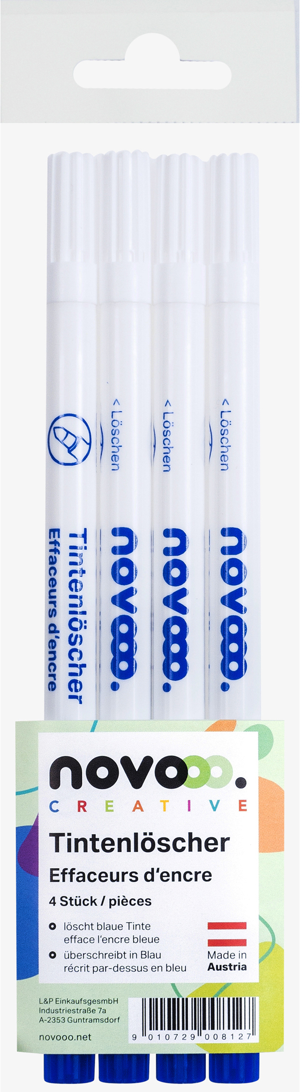 Das NOVOOO Tintenlöscherset 16103 enthält 4 Rundspitzen und eignet sich ideal zum mühelosen Entfernen von Tinte. Perfekt für Schule und Büro!