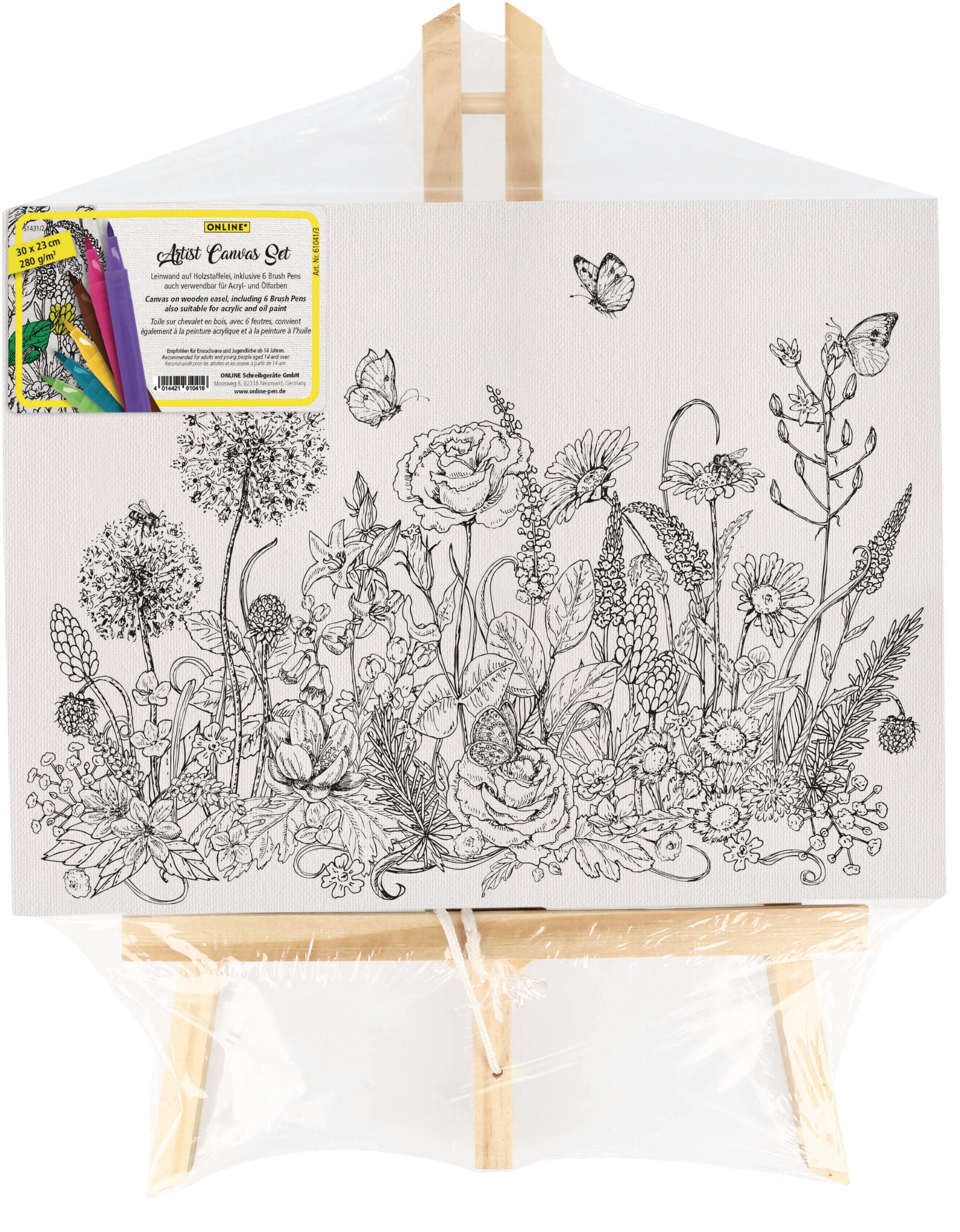 ONLINE Artist Leinwand Set Flowers 61041/3 inkl. 6 Brushpens 30x23cm