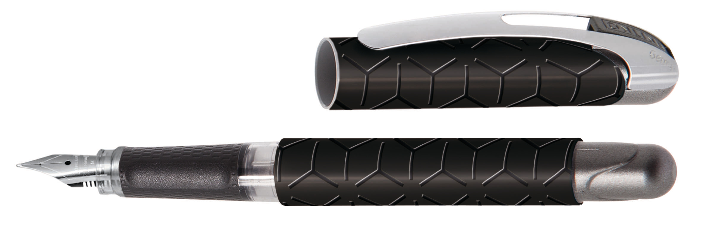 Der College II Füllhalter besteht aus robustem Kunststoff, das nicht nur langlebig ist, sondern auch ein angenehmes Gewicht bietet, das die Handhabung erleichtert. Die glatte Oberfläche in einem stilvollen Schwarz mit blauen Akzenten verleiht dem Füllhalter eine moderne und ansprechende Optik. Das ergonomische Design sorgt zudem für einen bequemen Halt, sodass auch längeres Schreiben ohne Ermüdung möglich ist.