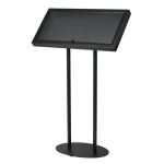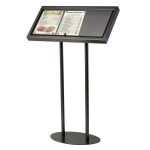 Insgesamt ist dieser moderne schwarze Speisekartenständer eine ideale Wahl für Restaurants, Cafés, Bars und andere Geschäfte, die eine attraktive Präsentation von Menüs oder Informationen im Freien benötigen. Mit seinen strapazierfähigen Materialien, der pulverbeschichteten Basis und der praktischen Nutzbarkeit ist dieser Ständer ein unverzichtbares Accessoire, das Funktionalität und Ästhetik harmonisch vereint.