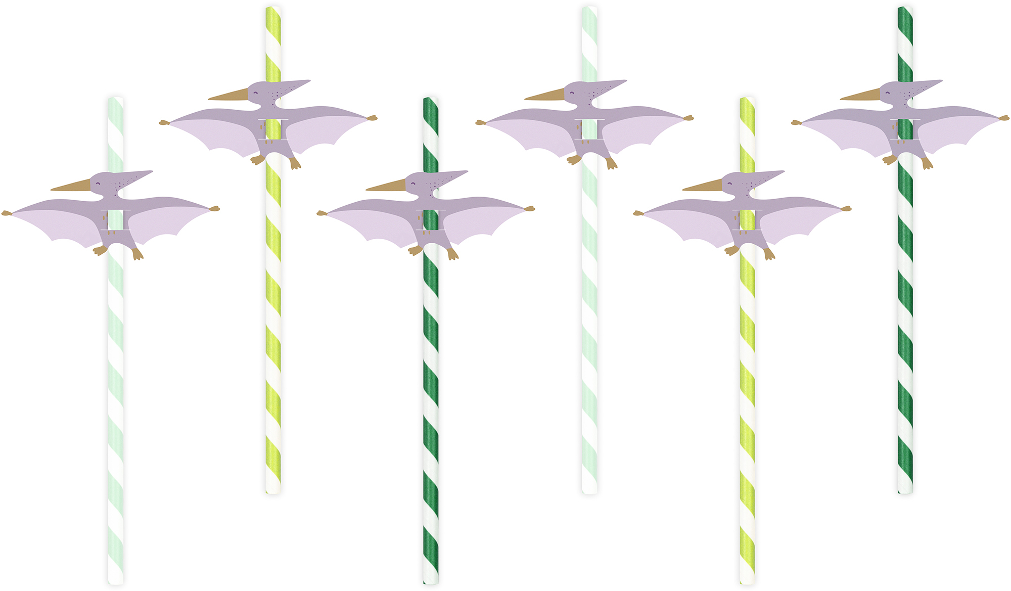 PARTYDECO Trinkhalme 19.5cm NSL1 Pterodaktylus 6 Stück