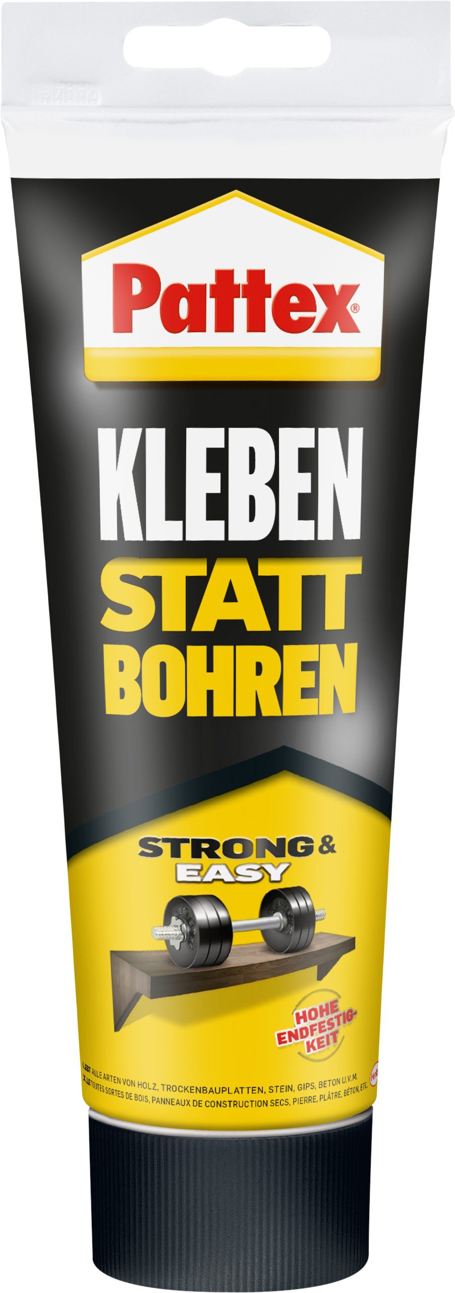 Ohne Lärm, Dreck und Bohren: Mit dem Pattex Montagekleber können Befestigungen schnell und sauber realisiert werden. Der Baukleber ist ideal, um saugende Materialien mit glatten Untergründen zu verbinden und haftet auf einer Vielzahl an Materialien: z. B. kann er als Holzkleber, Keramikkleber oder PVC Kleber eingesetzt werden. Dabei überzeugt der Klebstoff mit seiner starken Endfestigkeit, sobald er getrocknet ist. Vielseitig im Haushalt einsetzbar haftet der Montagekleber auf Styropor, Keramik, Stein, Kork, Sockelleisten, Spanplatten, Putz, Gips und vielen weiteren Untergründen. Darüber hinaus kann er auch für Aussenbereiche verwendet werden, da er temperaturbeständig (-20 °C bis +80 °C) ist und Witterungen sowie Alterung standhält. Für schnelle, zuverlässige Befestigungen ohne zu Bohren ? Pattex Montagekleber Kleben statt Bohren.