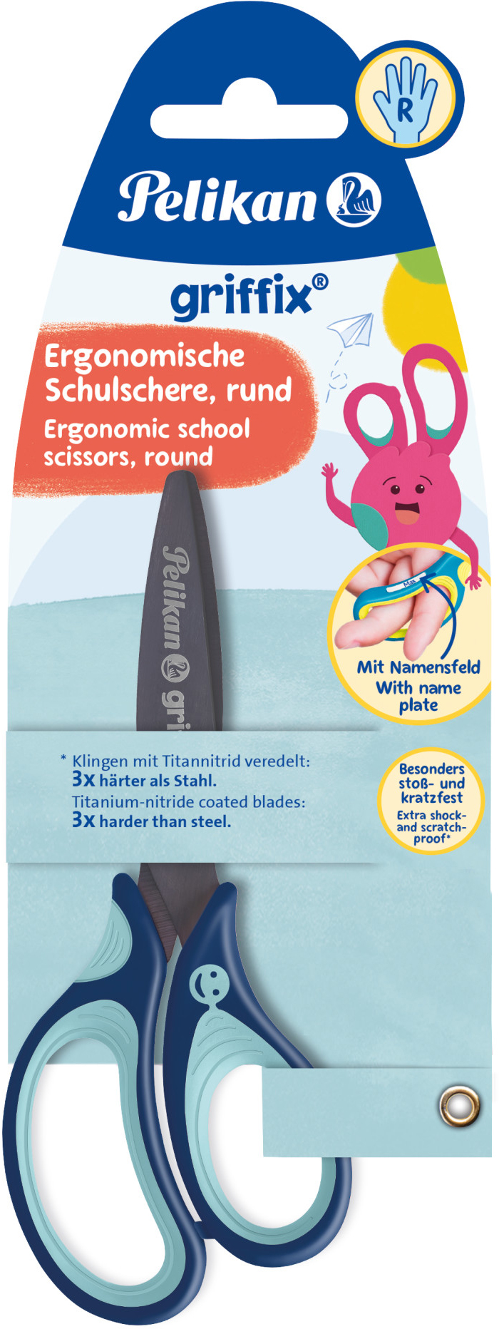 Die PELIKAN griffix Schere in Blau (Modell 803502) ist ein speziell für Rechtshänder entwickeltes Schneidewerkzeug, das sowohl für Kinder als auch für Erwachsene geeignet ist. Mit ihrem ergonomischen Design und der hochwertigen Verarbeitung bietet diese Schere ein hervorragendes Schneiderlebnis und unterstützt die Benutzer dabei, präzise und sicher zu arbeiten.
