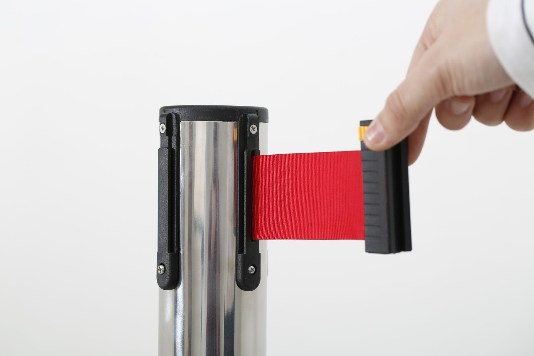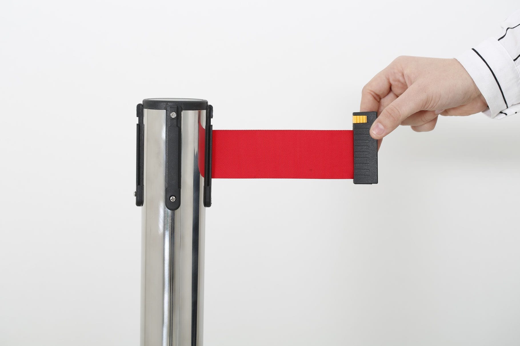 Der Q-Belt Kordel überzeugt mit seinem einziehbaren Leitsystem, das eine schnelle Anpassung der Laufwege ermöglicht. Mit einem praktischen Einziehmechanismus kann das Band auf Zug gebracht werden, sobald es herausgezogen wurde. Dadurch können Menschenströme effizient gelenkt werden, ohne dabei Abstriche bei der Flexibilität zu machen.