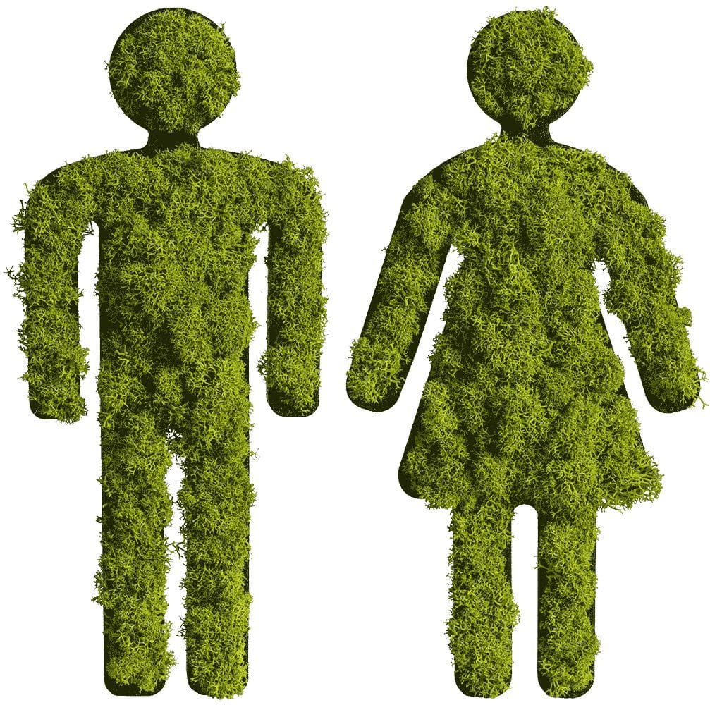 Entdecken Sie das Toilettenschilder-Set «Mann» und «Frau» mit einem eleganten schwarzen Korkrahmen und echtem, konservierten Islandmoos. Diese einzigartigen Piktogramme sind nicht nur äußerst dekorativ, sondern auch funktional und helfen dabei, klar zu kennzeichnen, für wen bestimmte Bereiche gedacht sind. Mit einer Größe von 25 cm eignen sie sich ideal für Türen oder als Wegweiser an Wänden.
