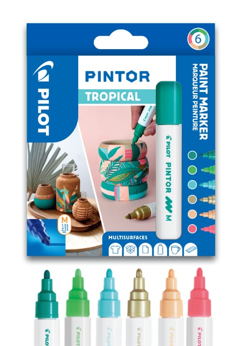 Mit dem Marker-Set PINTOR von PILOT sind deiner Kreativität keine Grenzen gesetzt. Die Marker sind äusserst vielseitig einsetzbar und eignen sich für nahezu alle Oberflächen. Egal ob Glas, Porzellan, Holz, Jeansstoff oder Kork – mit diesem Kreativmarker kannst du deine Ideen umsetzen.