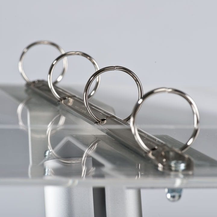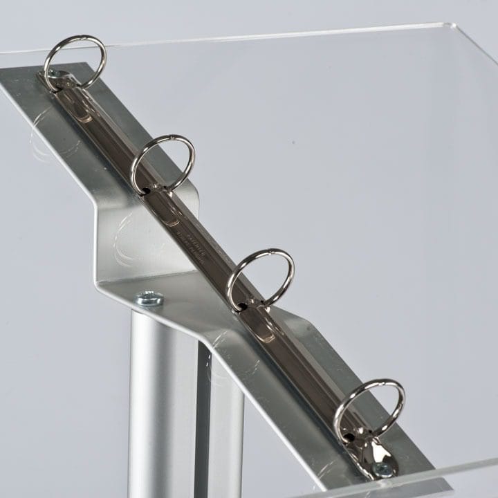 Das silbereloxierte Aluminiummaterial sorgt für Langlebigkeit und Widerstandsfähigkeit gegenüber den Anforderungen des täglichen Betriebs. Selbst bei häufigem Gebrauch bleibt der Ständer stabil und zuverlässig für die Präsentation Ihrer Inhalte.