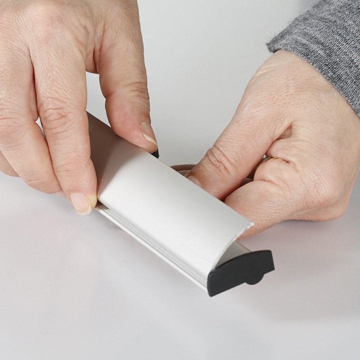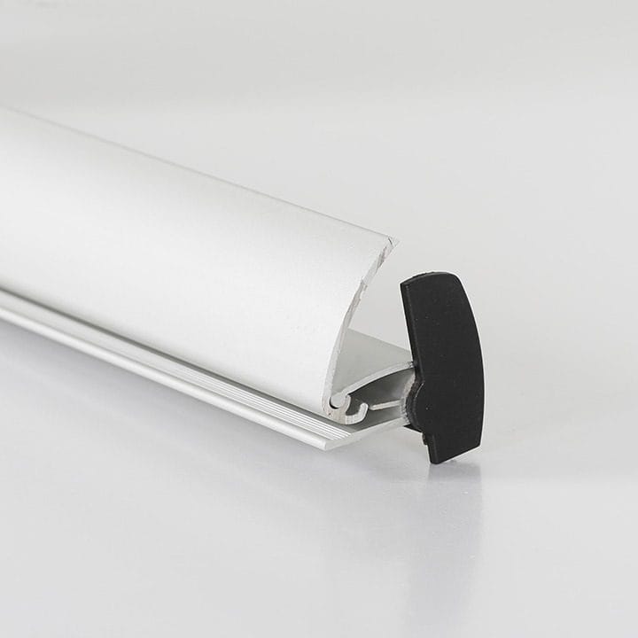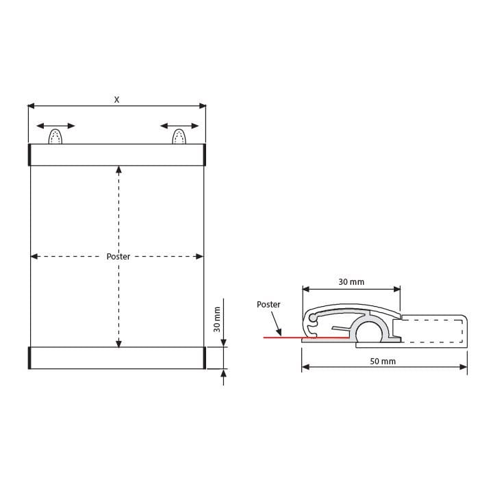 Jedes Set der Poster-Klemmschiene beinhaltet zwei Profile, Endkappen und Aufhänger. Dieses Zubehör gewährleistet eine sichere Befestigung und sorgt dafür, dass Ihre Poster sicher und stabil an Ort und Stelle bleiben.