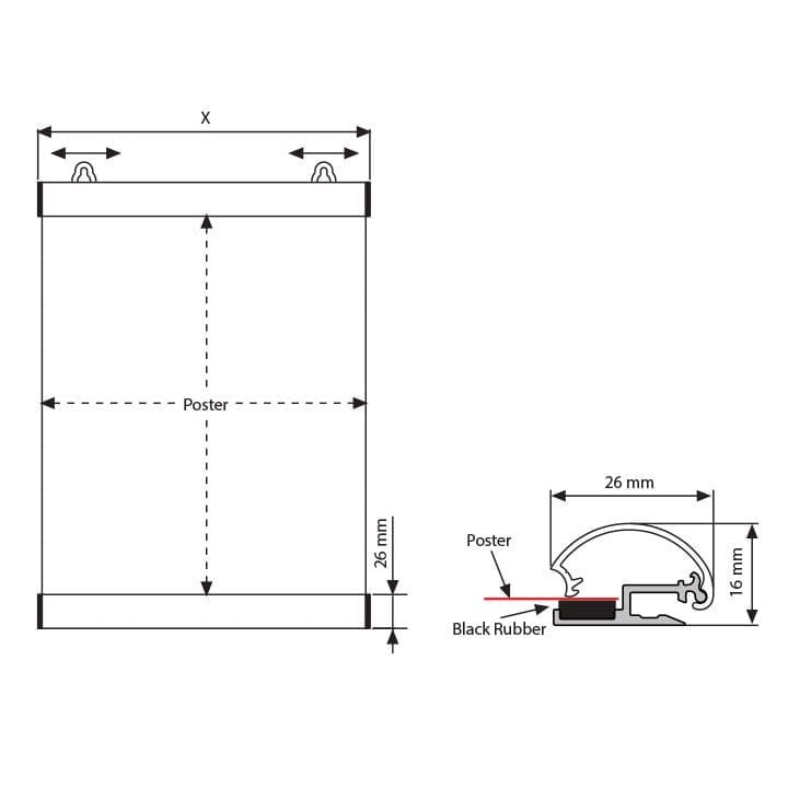 Jedes Set des Menda Posterhalters enthält zwei Profile, Endkappen und Aufhänger. Dieses vollständige Zubehör gewährleistet eine professionelle Montage und Präsentation Ihrer Poster.