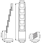 Trotz seiner kompakten Größe bietet der Prospektständer eine großzügige Ablage- und Auslagefläche. Mit der Möglichkeit, 5x A4 Auslagen aufzunehmen, schaffen Sie eine effektive Präsentationsfläche für Ihre Broschüren und Informationen. Dieses durchdachte Design maximiert die Effizienz des Ständers und ermöglicht eine attraktive Darstellung Ihrer Materialien.