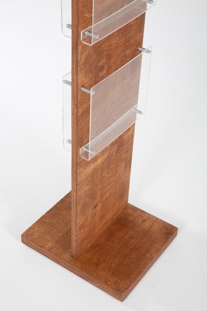 Der Prospektständer Zebrano beeindruckt nicht nur durch seine Funktionalität, sondern auch durch die natürliche Schönheit des verwendeten Buchenholzes. In einer gebeizten Optik präsentiert, verleiht das warme Holz und die Maserung des Zebrano-Holzes dem Ständer eine zeitlose Eleganz, die in verschiedenen Umgebungen gut zur Geltung kommt. Dieses ästhetische Erscheinungsbild macht ihn zu einem Blickfang, egal wo er platziert wird.