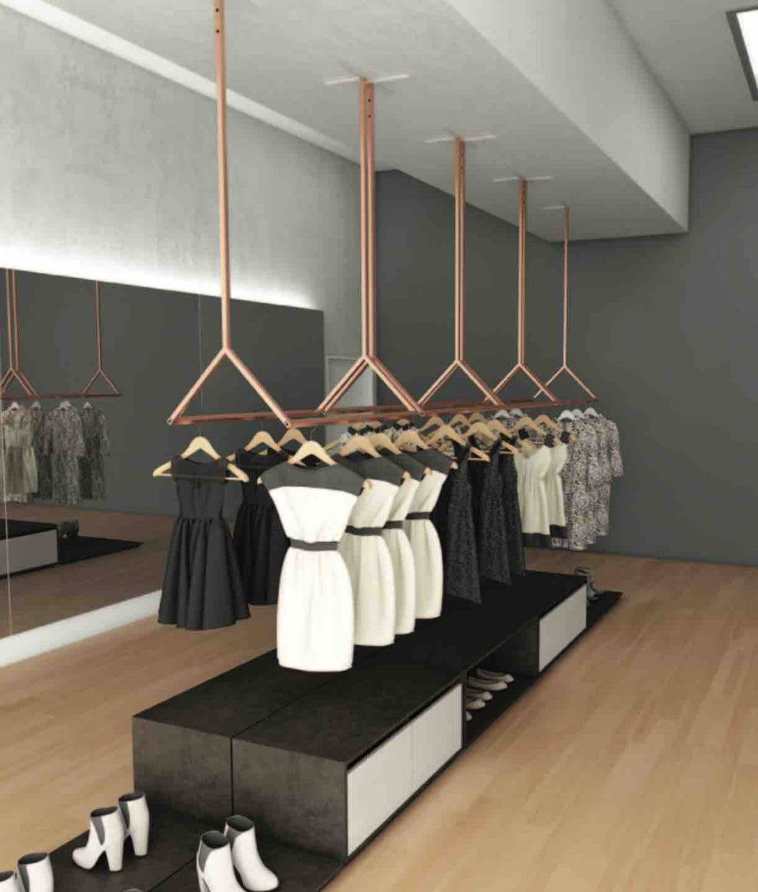 Der Ständer Rainbow eignet sich ideal für die direkte Deckenbefestigung. Dank seines schlanken Designs nimmt er nur wenig Platz ein und fügt sich dezent in jeden Raum ein. Somit ist er nicht nur in Schlafzimmern oder Ankleidezimmern ein praktischer Begleiter, sondern auch im Flur oder Eingangsbereich.