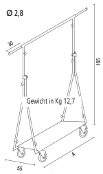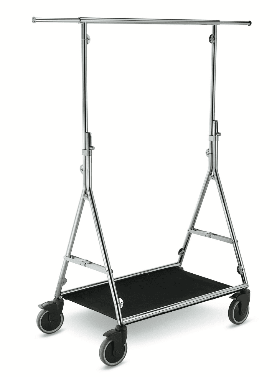 Mit einer beeindruckenden Tragkraft von bis zu 150 kg bietet der Reiserollständer Elite die Zuverlässigkeit, die Sie benötigen, um eine Vielzahl von Kleidungsstücken sicher und stilvoll zu präsentieren.