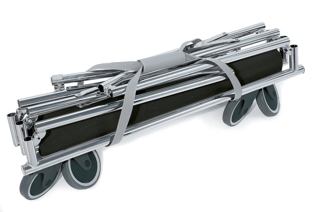 Der Reiserollständer Elite ist leicht zusammenklappbar, was ihn äußerst praktisch für den Transport und die Lagerung macht. Diese Funktion ermöglicht es Ihnen, den Ständer platzsparend zu verstauen, wenn er nicht in Gebrauch ist. Dies ist besonders nützlich bei Reisen oder wenn der Ständer temporär nicht benötigt wird.