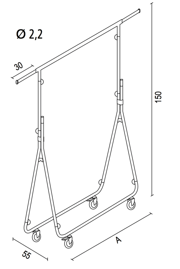 Dieser Rollständer ist speziell für Reisen und den Einsatz bei Messeständen, Pop-up-Shops oder temporären Präsentationen konzipiert. Durch seine kompakte Größe und Mobilität ist er der ideale Begleiter für stilvolle Präsentationen auch unterwegs, sodass Sie Ihre Kleidungsstücke überall wirkungsvoll präsentieren können.