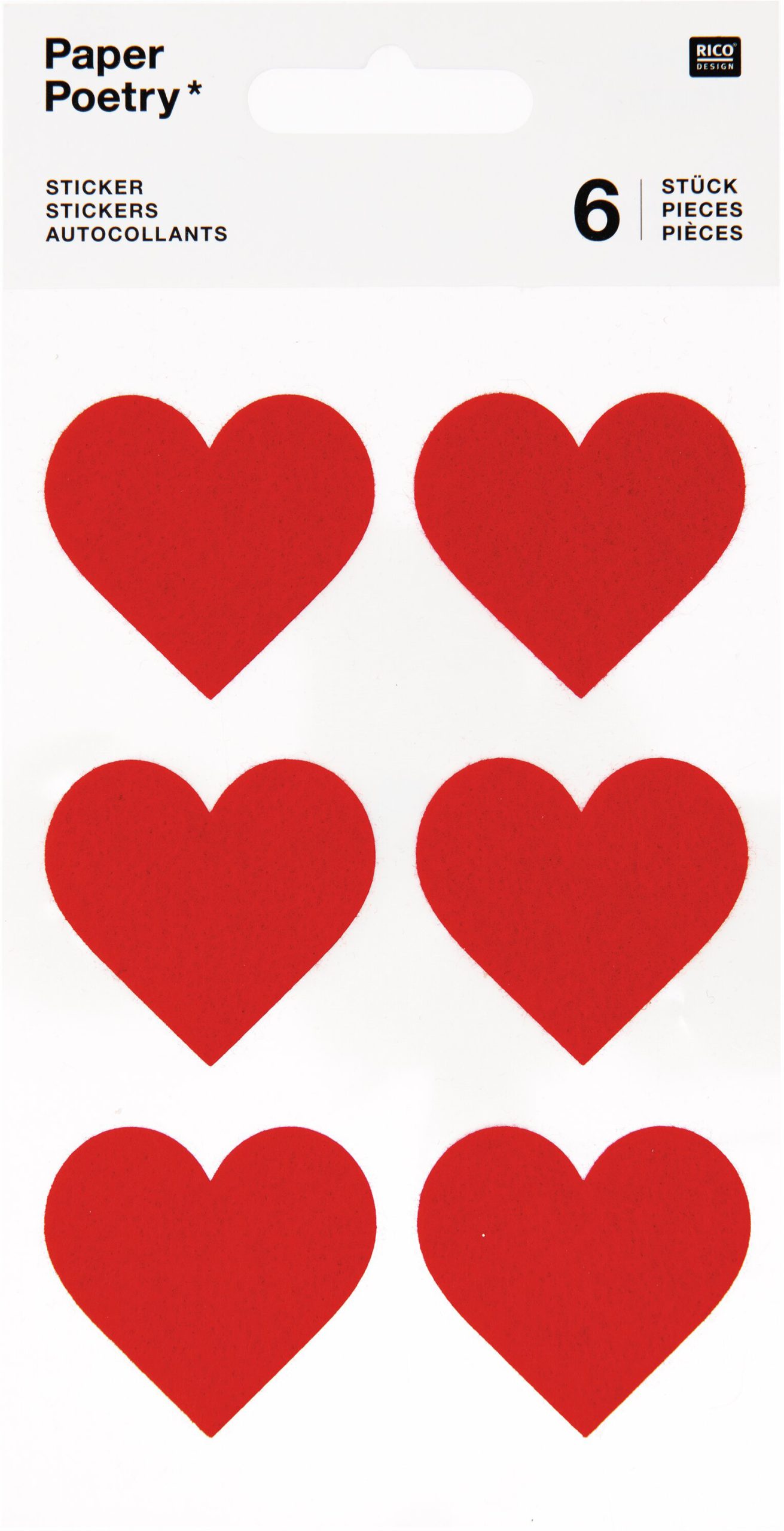 RICO DESIGN Filzsticker Herzen, gross 08792.71.64 rot 6 Stück
