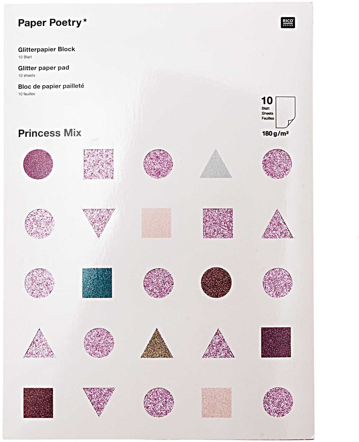 RICO DESIGN Glitterpapierblock A4 0 Prnicess 180g, 10 Blatt