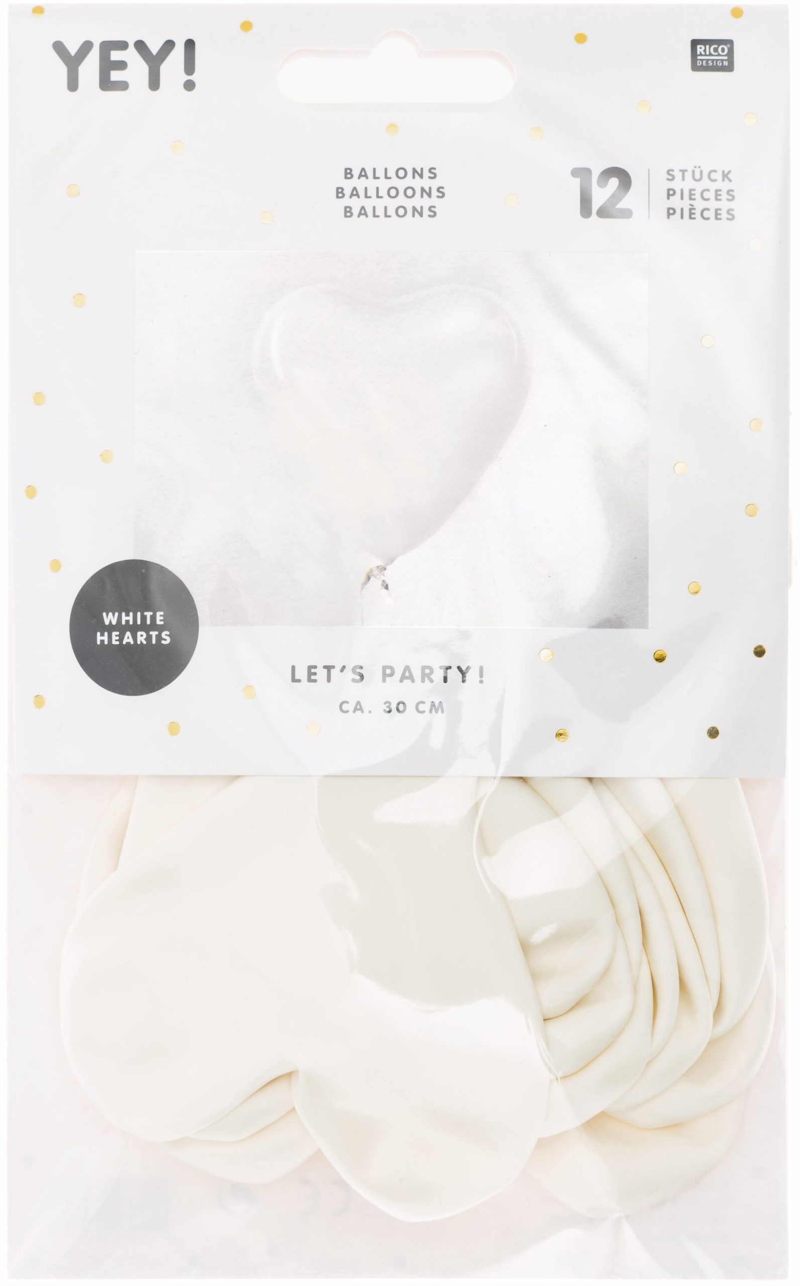 RICO DESIGN Luftballons 30cm 81001.00.04 Herz, weiss 12 Stück