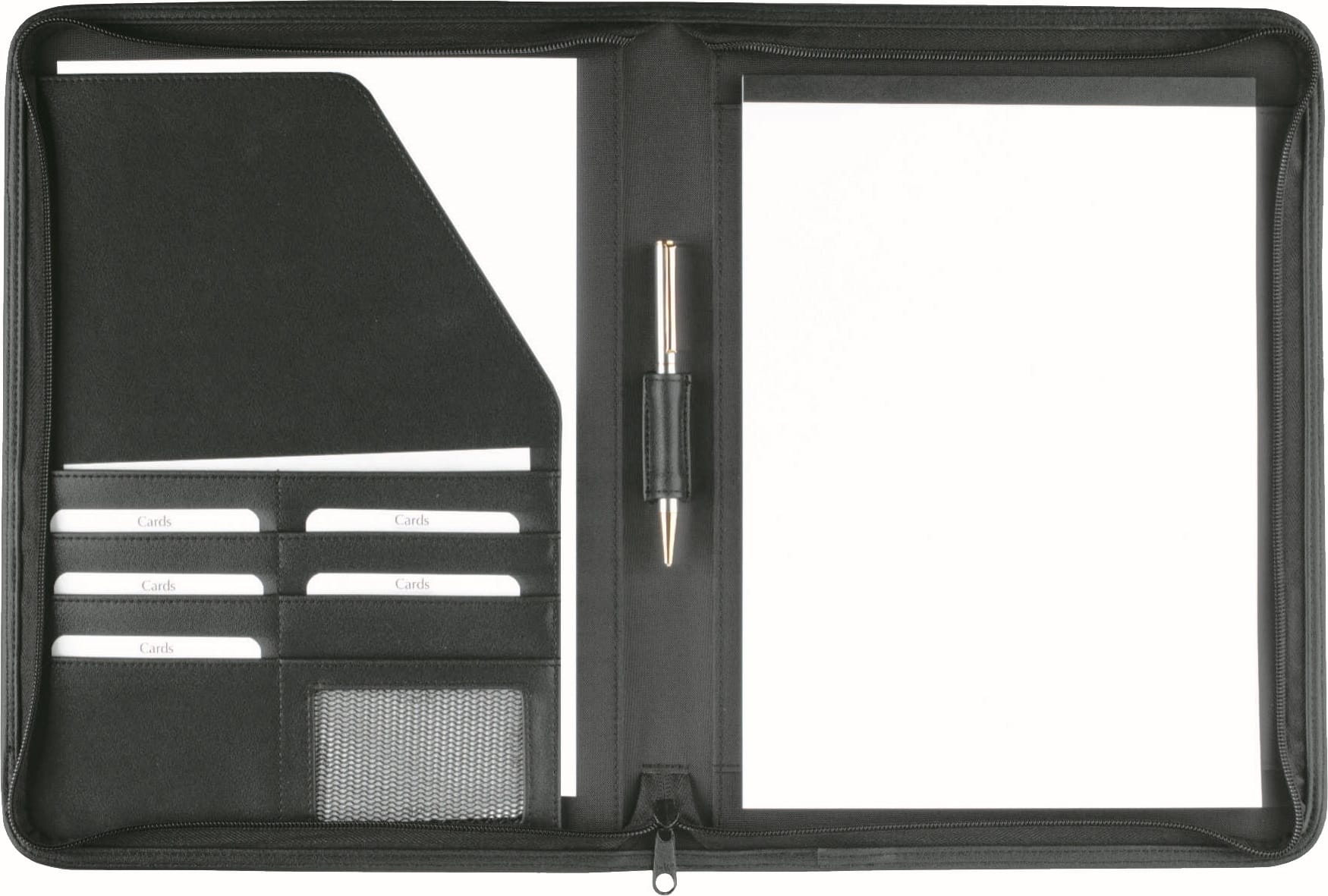 Entdecke unsere Schreibmappe aus lederähnlichem Softana-Material mit grossem Einsteckfach, 6 Visitenkartenfächern und Stiftschlaufe. Ideal für A4-Schreibblöcke, erhältlich mit oder ohne Reissverschluss. Masse: 33 x 25 cm (geschlossen) bzw. 35 x 26 cm (mit Reissverschluss). Exklusives Design für deinen Arbeitsalltag.