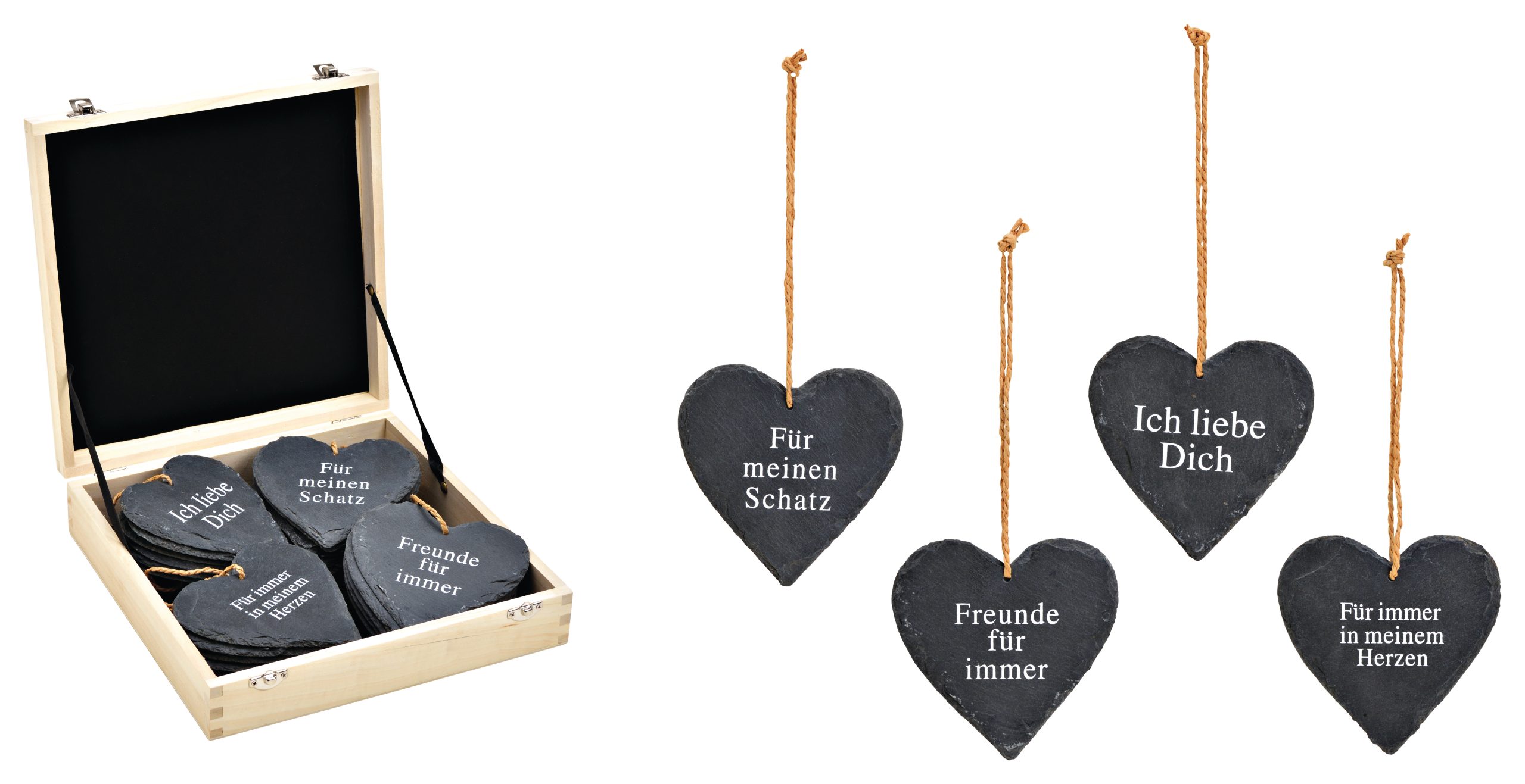 Hergestellt aus hochwertigem Schiefer, besticht dieses Herz durch seine natürliche und rustikale Optik. Schiefer ist ein langlebiges, robustes Material, das sich durch seine Widerstandsfähigkeit auszeichnet. Jedes Stück ist ein Unikat, da die Oberflächenstruktur und die Farbnuancen variieren können, was jedem Herz eine individuelle Note verleiht. Die Kanten sind sorgfältig bearbeitet, sodass das Herz sowohl in der Handhabung als auch im Erscheinungsbild angenehm ist.
