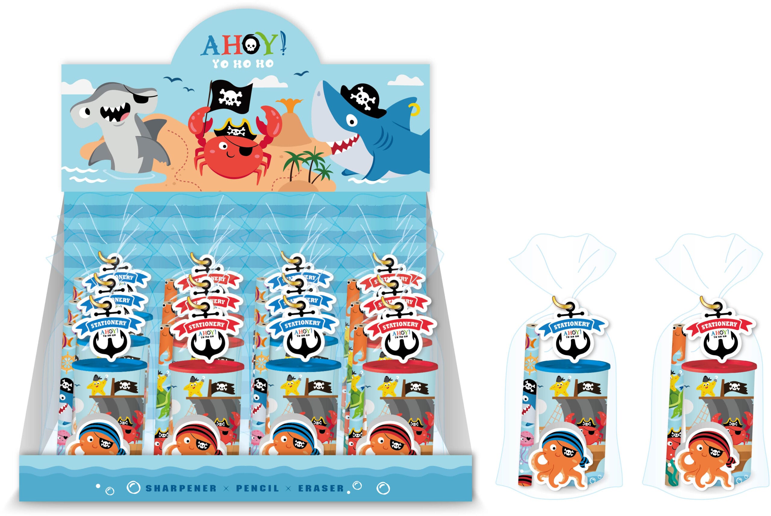 Das Pirate Ocean 3-er Schreibwaren Set ist ein Must-Have für alle kleinen Piraten und Piratenfans. Mit hochwertigen Materialien, vielfältigen Anwendungsmöglichkeiten und niedlichen Piratenmotiven begeistert dieses Set Gross und Klein gleichermassen. Hol dir jetzt das Pirate Ocean 3-er Schreibwaren Set und lass die Abenteuer auf dem Papier lebendig werden!