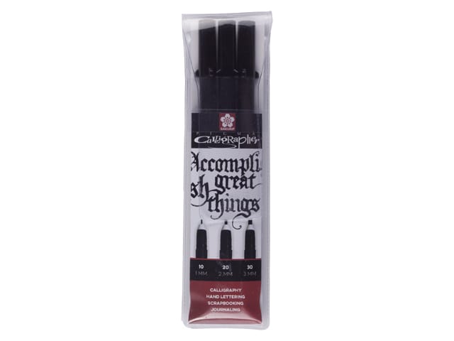 Wenn Sie auf der Suche nach hochwertigem Kalligraphie-Zubehör sind, brauchen Sie nur zwei Dinge: Feinpapier und den Pigma Calligrapher Stift. Schluss mit dem lästigen Austauschen von Tintenpatronen, dem Hantieren mit Tintenfässchen oder dem Wechseln von Stiftspitzen. Der Pigma Calligrapher ist ein einzigartiger Stift, der alles bietet, was Sie für schönes Schreiben benötigen.