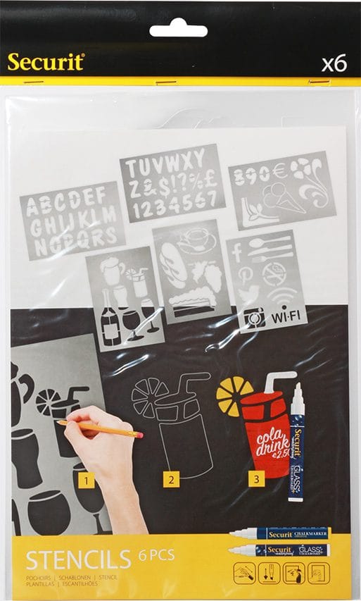 Auch ohne eine professionelle Handschrift können Sie mit diesem Schablonen Set professionell aussehende Beschriftungen erstellen. Dies ist ideal für Restaurants, Cafés, Geschäfte oder für den Einsatz zu Hause.
