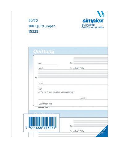 Schreiben Sie die erste Rezension für «SIMPLEX Quittungen D A6 15325 weiss 50×2 Blatt»