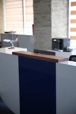 Schutzwand Woody für Empfangstresen: Hygienesperre und Abstandshalter in einem