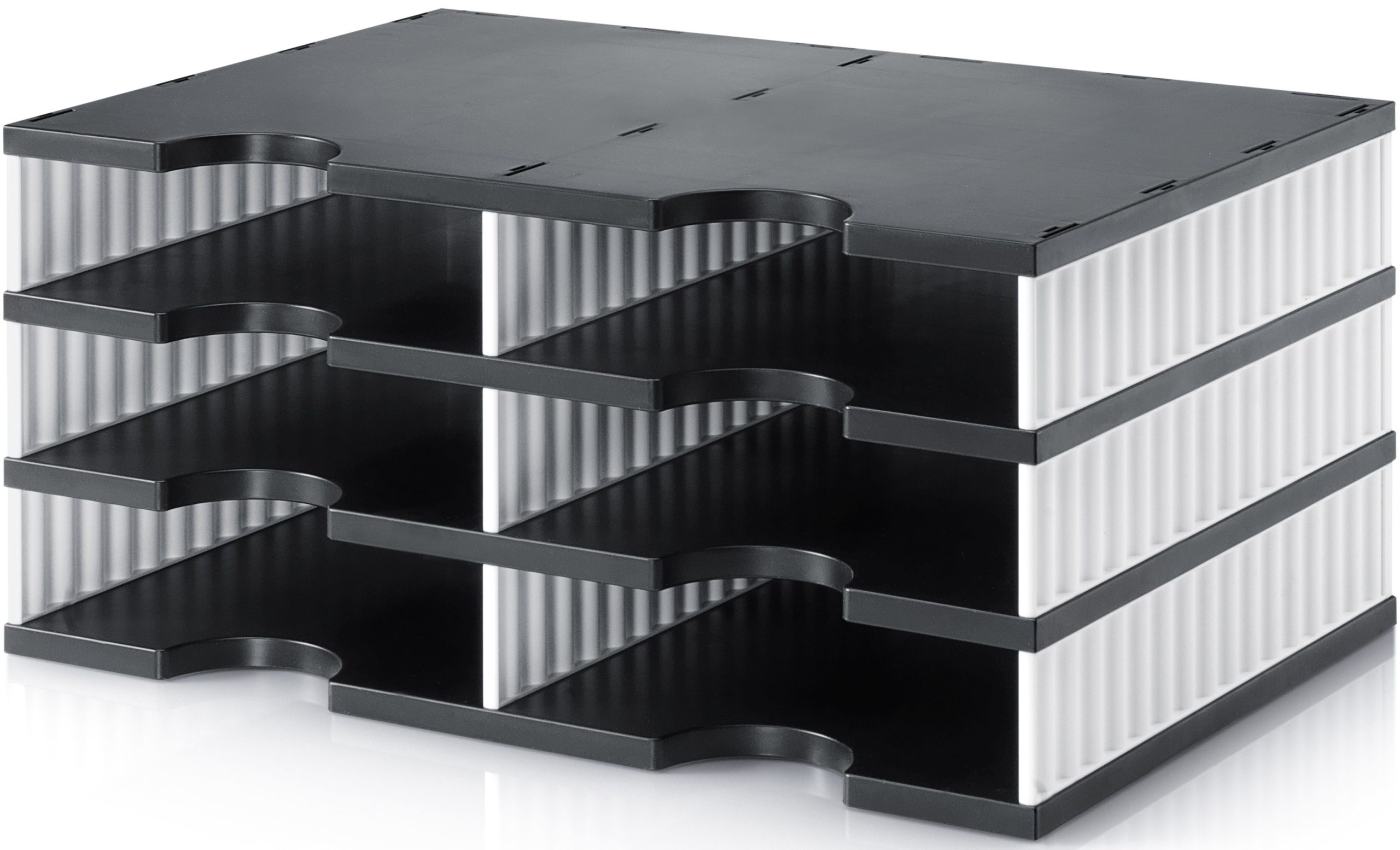 • Platzersparnis: Durch die vertikale Anordnung der Fächer wird wertvoller Platz auf dem Schreibtisch gespart.