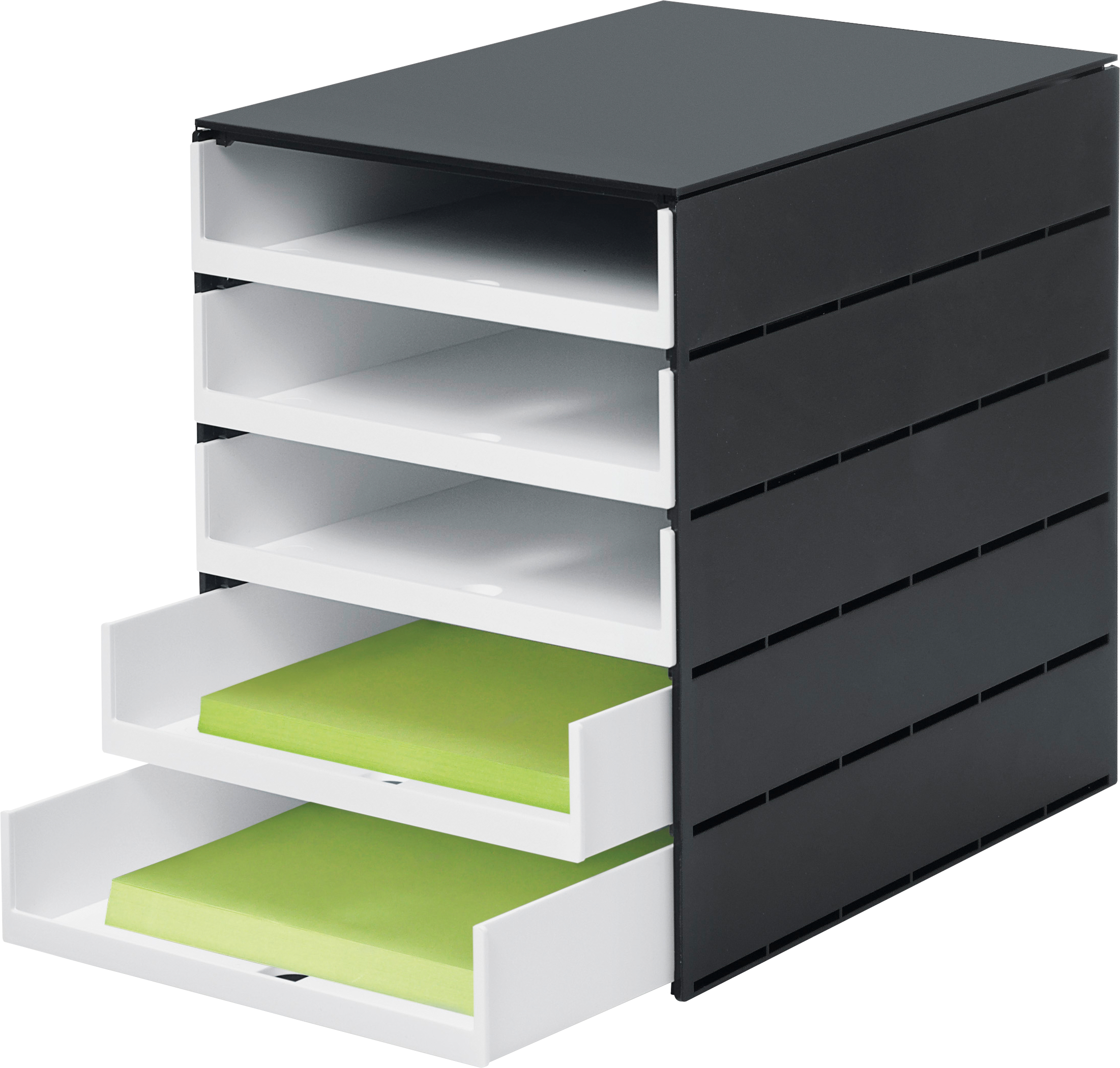 Die STYRO Schubladenbox styroval pro 14-8001.92 in elegantem Schwarz-Weiss ist die perfekte Lösung für eine übersichtliche und stilvolle Aufbewahrung. Mit ihren fünf offenen Schubladen bietet sie ausreichend Platz für eine Vielzahl von Utensilien, sei es im Büro, im Wohnzimmer oder im Kinderzimmer. Die Kombination aus modernem Design und funktionalem Nutzen macht diese Schubladenbox zu einem unverzichtbaren Bestandteil jeder Einrichtung.