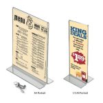 Der Tischaufsteller beeindruckt nicht nur durch seine klare Transparenz, sondern auch durch seine T-Form. Diese spezielle Formgebung sorgt nicht nur für Stabilität, sondern verleiht dem Aufsteller auch eine moderne Optik, die sich nahtlos in verschiedene Einrichtungsstile einfügt. Ob in einer luxuriösen Hotellobby oder einem gemütlichen Café, dieser Tischaufsteller fügt sich harmonisch ein und verleiht gleichzeitig dem Umfeld eine ansprechende Note.